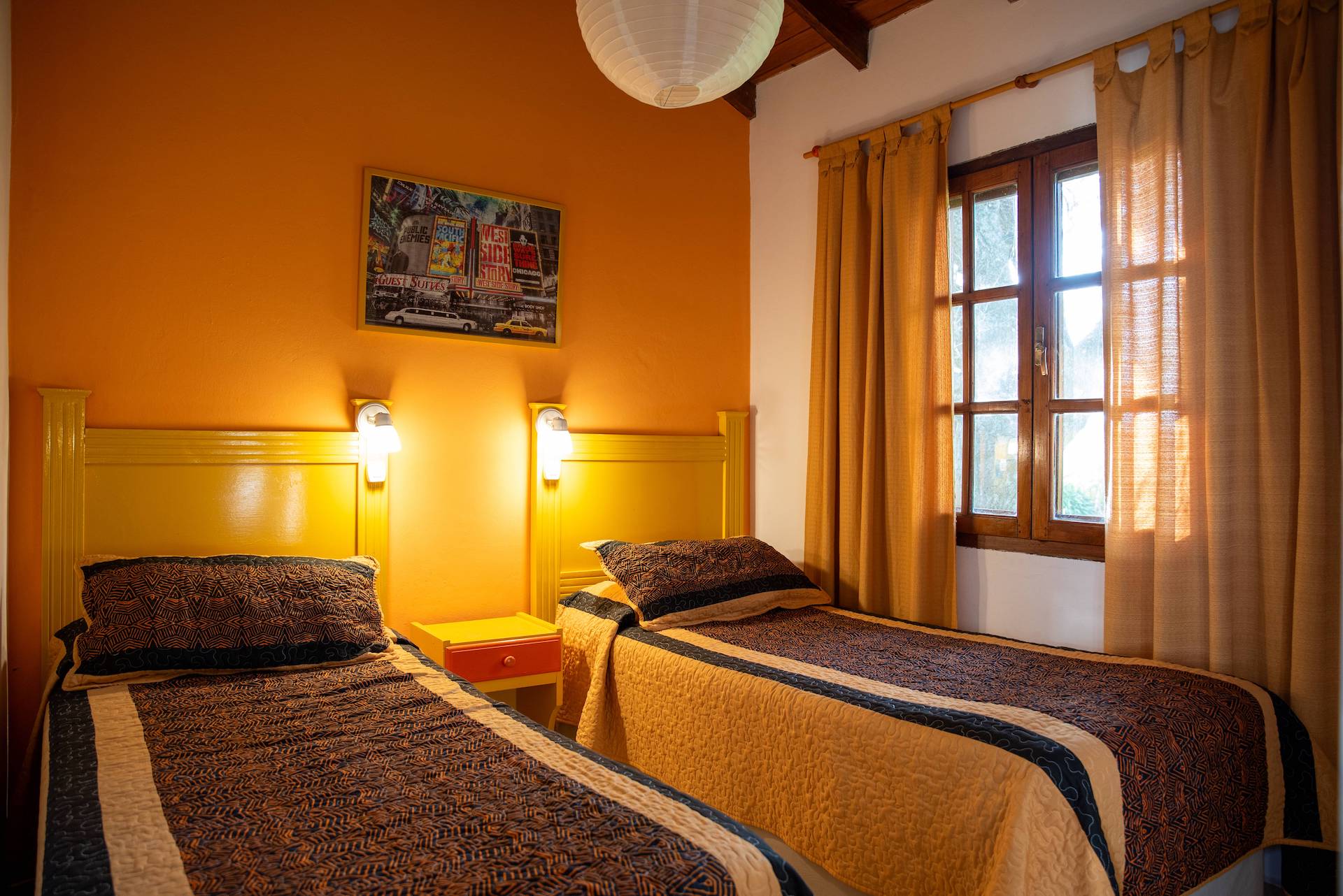 Nuestras cabañas para 4 personas disponen de dos dormitorios, uno con cama matrimonial, y otros con dos camas individuales.