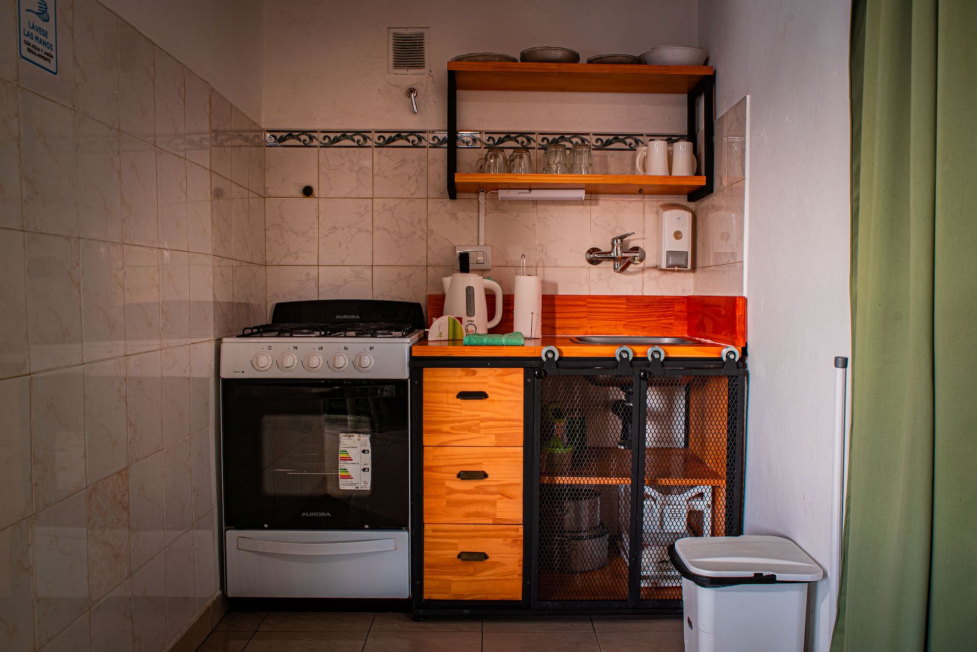 Dispone de cocina de cuatro hornallas con horno a gas, microondas, heladera y televisor. Tenés a disposición toda la vajilla para que te prepares el desayuno en el horario que quieras. Diariamente podrás encontrar: tostadas, galletitas de agua, manteca, mermelada, dulce de leche, queso untable, porciones de torta, leche, te, café, yerba y azúcar. También contamos con desayuno para celíacos (bajo pedido). Parrilla y estacionamiento individual en cada unidad.