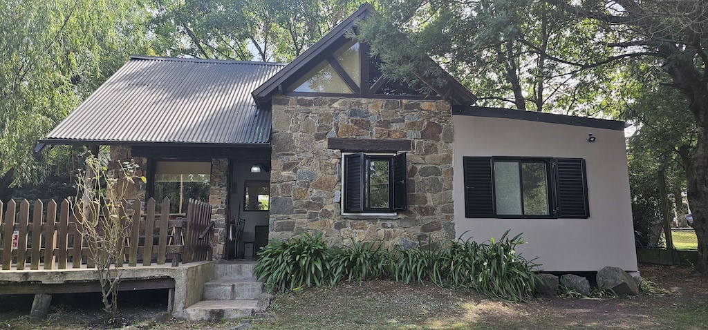 Disfrutá de un almuerzo o cena desde el comedor de la cabaña con vista al parque o desde el deck con vista a las sierras. Las piedras, la tranquilidad y el paisaje serán el escenario que acompañará tu encuentro familiar, junto a la mesa cerealera con su encanto de siempre. Por la noche, la luna plateada se ve desde tu cama. La calefacción brinda su calidez en invierno y el aire serrano su frescor retenido en las paredes de piedra en verano.
