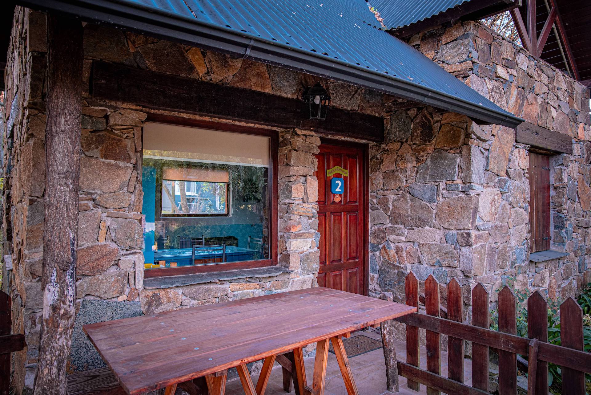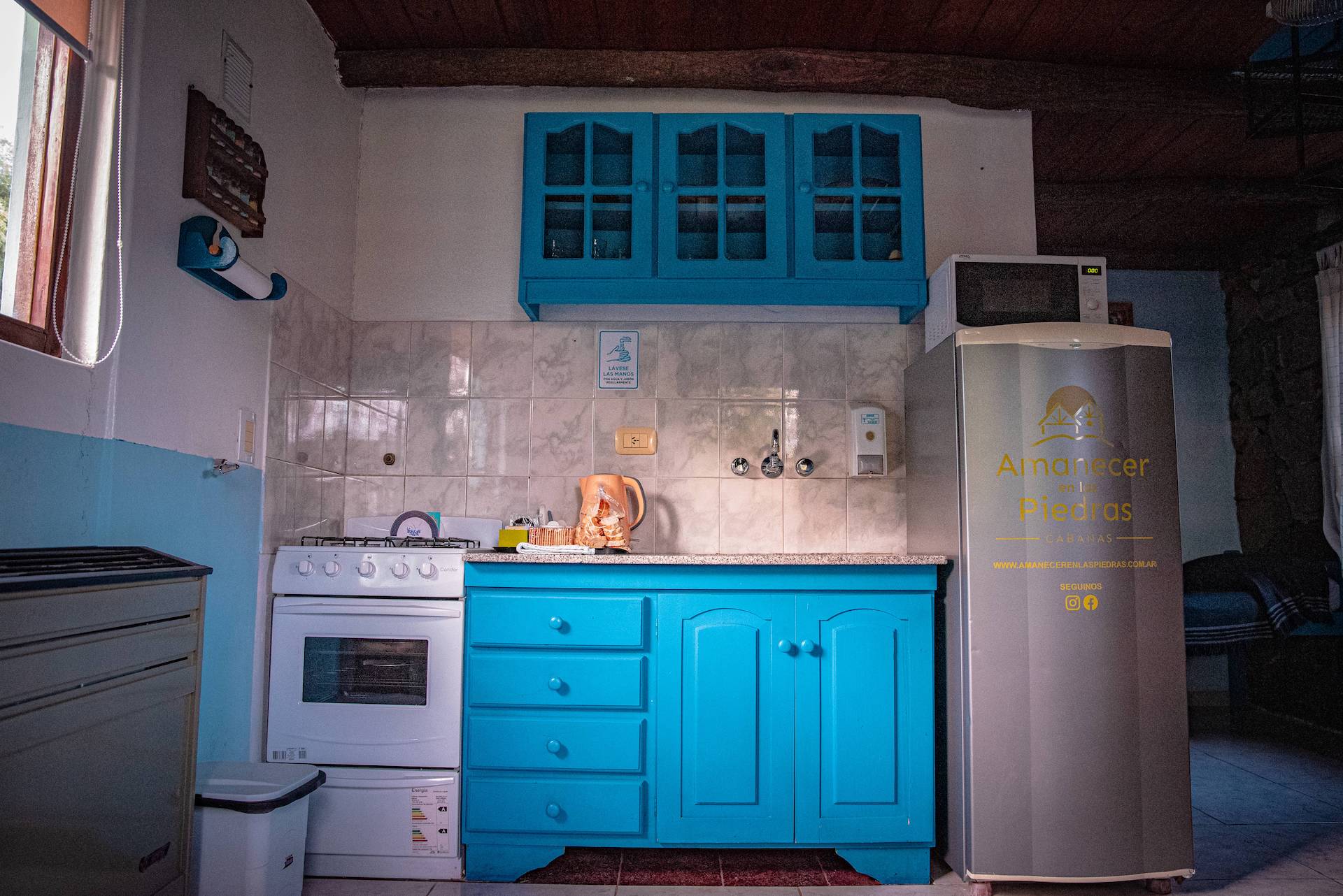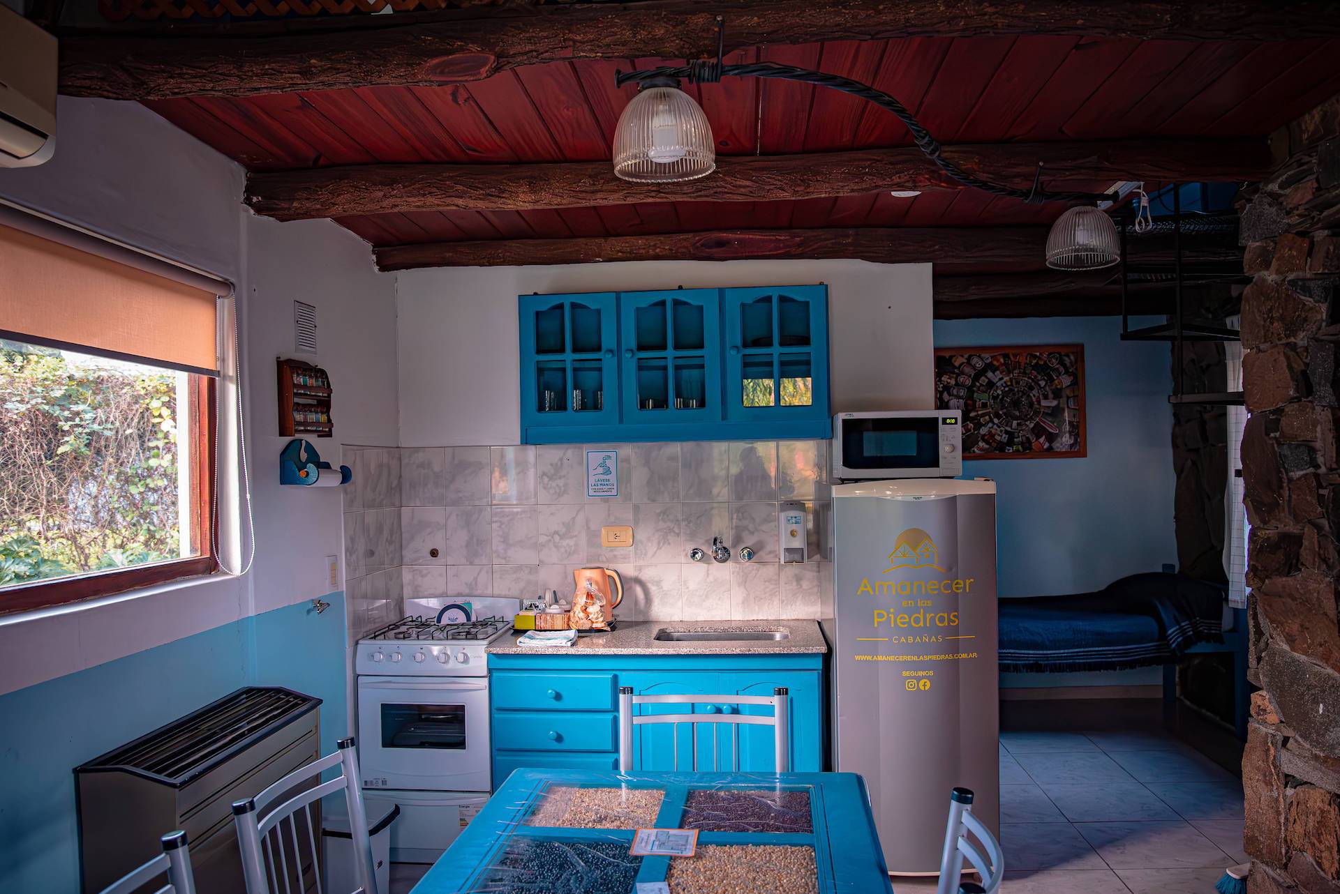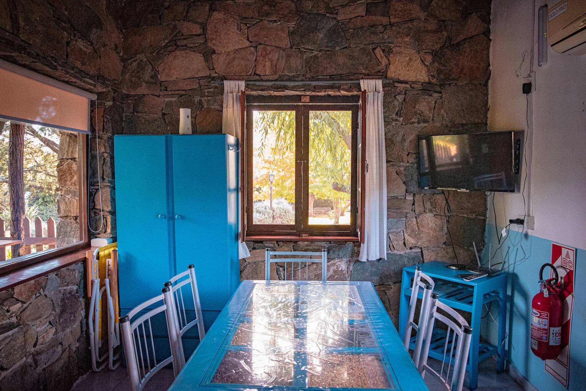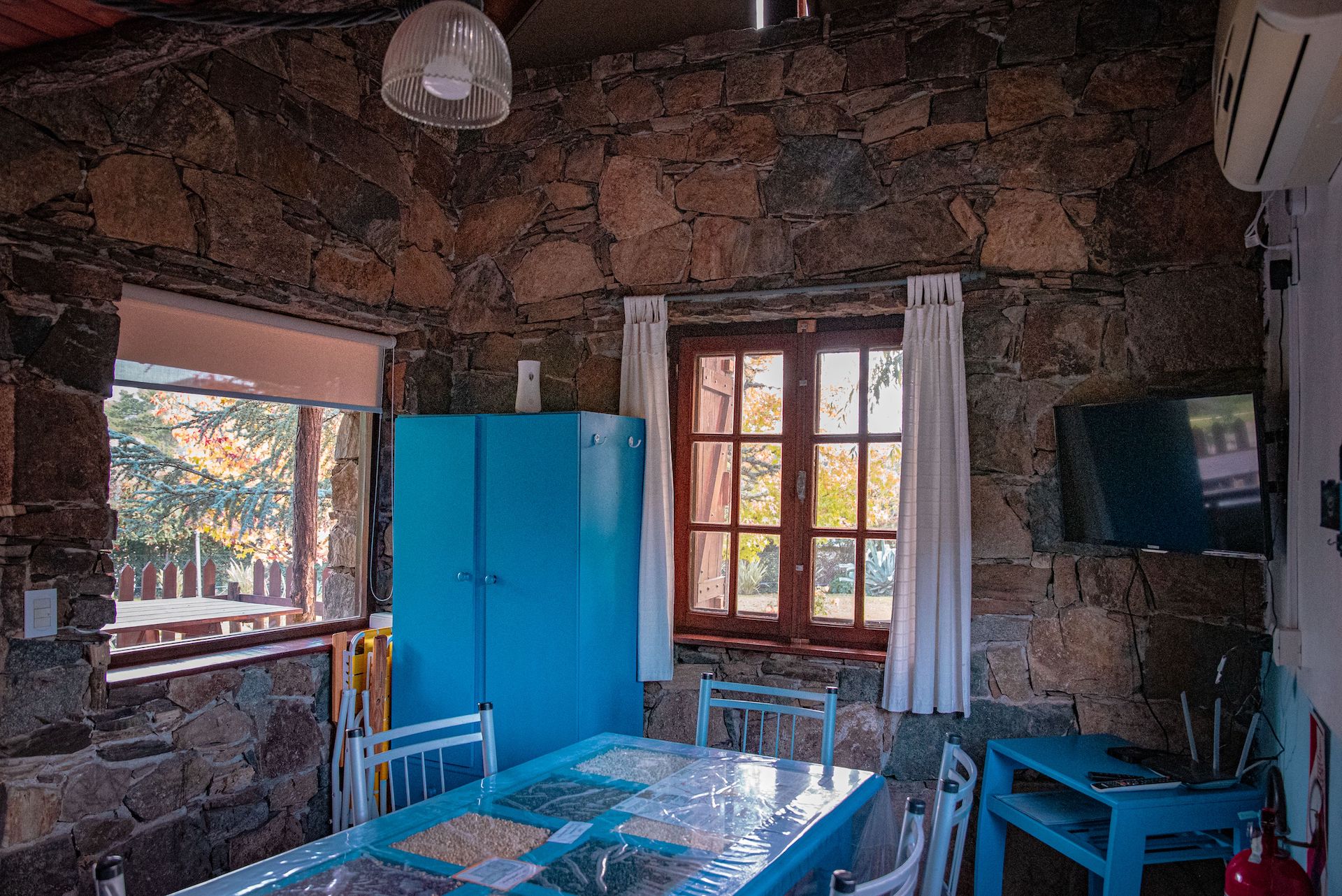 Disfrutá de un almuerzo o cena desde el comedor de la cabaña con vista al parque o desde el deck con vista a las sierras. Las piedras, la tranquilidad y el paisaje serán el escenario que acompañará tu encuentro familiar, junto a la mesa cerealera con su encanto de siempre. Por la noche, la luna plateada se ve desde tu cama. La calefacción brinda su calidez en invierno y el aire serrano su frescor retenido en las paredes de piedra en verano.