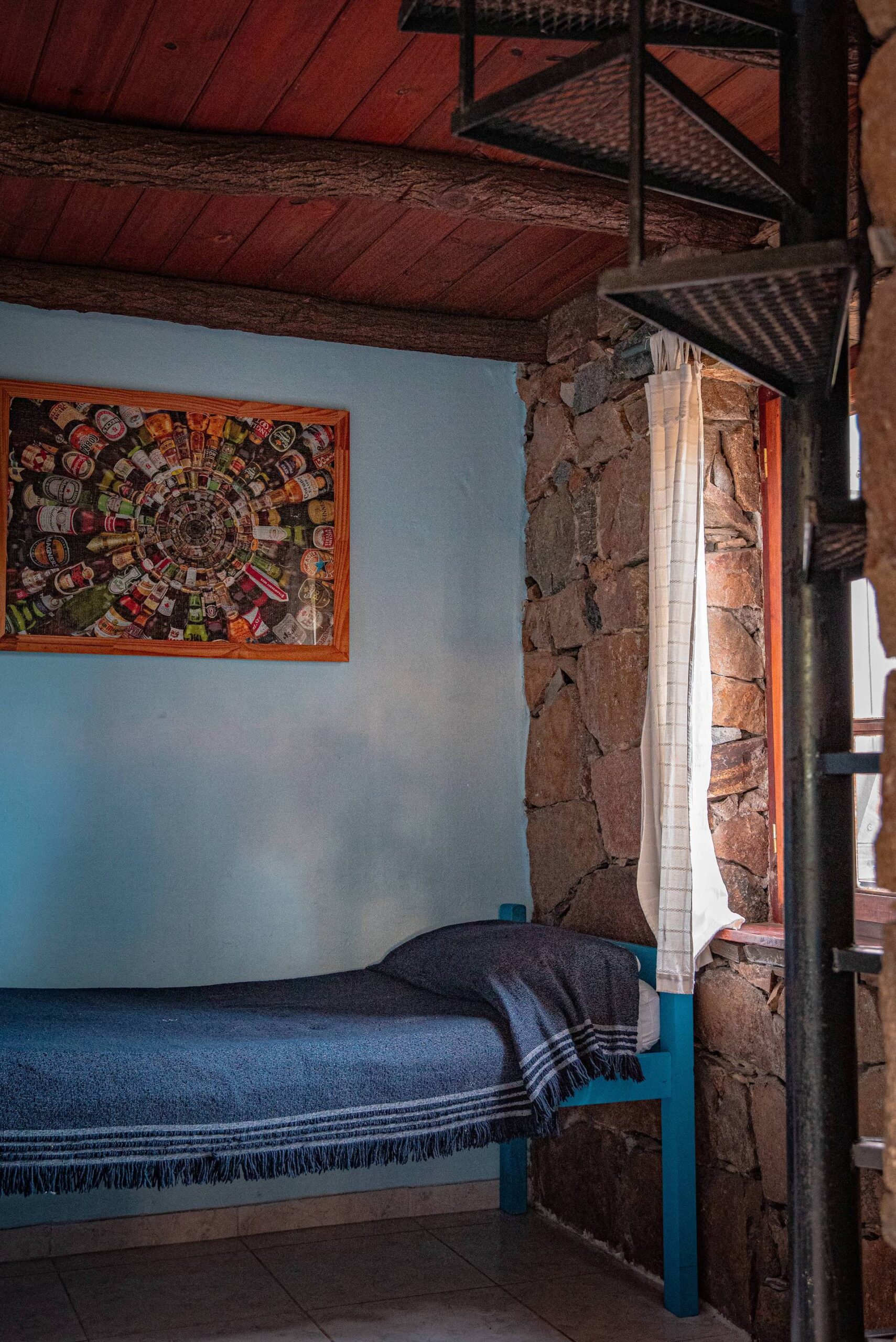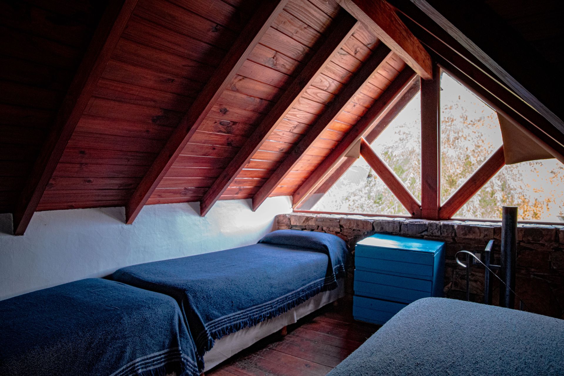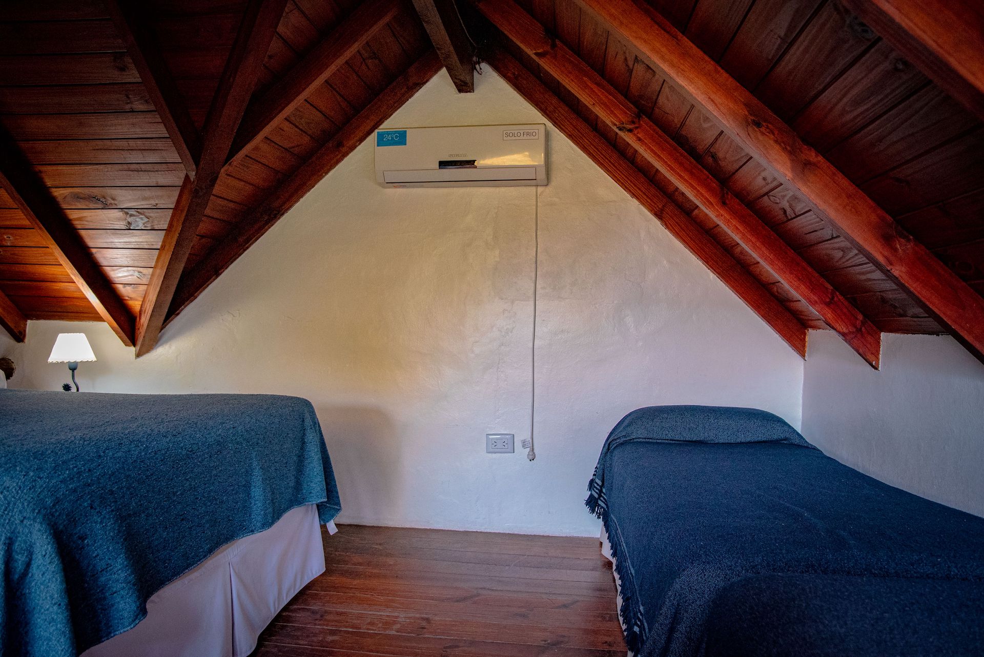 Nuestras cabañas para 5 personas tiene un estilo loft en dúplex, con un entrepiso abierto donde se encuentra la cama matrimonial y dos camas individuales. Y en la planta baja, una cama individual.